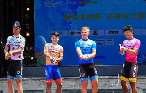 賽事第三站舉辦地――景德鎮樂平市位于江西省東北部,這里有藍浸綠染的國家級水利風景區“翠平湖”、鬼斧神工的省級重點風景名勝區“洪巖仙境”、稀世奇幻絕景“淚灘雙月”、巧奪天工的“文山石林”、避暑勝地“歷居寺”以及饒派風格古民居建筑群等一批特色自然人文景觀。樂平最為世人稱道的是贛劇的發揚和傳承,素稱“贛劇之鄉”。因樂平人民酷愛贛劇由來已久,全市保有古戲臺412座,又被稱為“中國古戲臺博物館”。在本賽站的頒獎儀式上,中外騎手們都領略到了令人醉心的樂平“高腔”,并為之叫好。中華文化精髓與瑰寶在不知不覺中深入人心。 在景德鎮樂平站112.3公里的比賽中,荷蘭猴城樂園車隊克里斯蒂安?亞歷山大奪得冠軍,挪威CCN歐洲聯隊格熱戈日?司特普尼克獲得亞軍,芬蘭米捷亞CCN車隊羅伊?伊弗明獲得季軍。爬坡王(圓點冠軍衫)和個人總成績(藍冠軍衫)獎分屬:荷蘭猴城樂園車隊的伊瓦爾?尼爾斯和克里斯蒂安?亞歷山大。沖刺王(橙冠軍衫)和最佳大中華獎(粉剪冠軍衫)分別由中國熊貓CCN車隊的彭源堂和中國臺北前勁車隊的陳建良獲得。景德鎮市及樂平市各級領導為獲獎選手及運動隊頒獎。之后,省體育局副局長林軍向樂平市委副書記、市長徐輝頒發了本屆大賽“優秀賽區”獎。