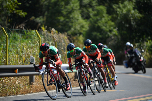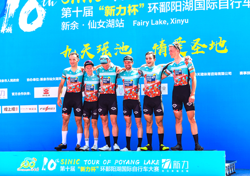 本賽段采用的是團隊計時賽方式,全程28.9公里,起點位于仙女湖廣場,終點設在圣集寺。車隊的出場順序由前三站的成績累計決定,前三站表現略遜一籌的車隊率先出發,出發時間相隔兩分鐘,成績最好的車隊的壓軸出發,以各隊第四名隊員抵達終點的成績為車隊的參賽成績。沒有了前三站大團體追逐競速的雄偉場面,今天仙女湖畔的旖旎風光間,呈現的是每隊5-6名運動員配合默契的高速騎行畫面,曲折多彎的環湖賽道考驗的是車手們高超的車技、高度集中的精神和完美的團隊戰術。經過一番緊張激烈的競逐,德國助力車隊選手憑借均衡的綜合實力和默契的配合,僅以36分47秒完成比賽,站在了本站賽事的最高領獎臺上,這也是該車隊在遭遇昨日萍鄉武功山賽段的失利后重新站上最高領獎臺。緊隨其后獲得第二、三名的是分別以36分59秒、37分02秒沖線的美國瑪吉斯野生世代洲際車隊和中國云南綠山園林車隊。與前一站相比,四色領騎衫僅有最考驗綜合實力的個人總成績(藍冠軍衫)易主,穿在了本站冠軍車隊――德國助力車隊選手阿德內?威廉簡身上,其他三色領騎衫與上一站相同,分別是:美國瑪吉斯野生世代洲際車隊選手肯特?貝爾納迪尼?羅斯獲沖刺王(橙冠軍衫);法國國防車隊選手朱利安?阿馬多利勇奪登山王(圓點冠軍衫);中國江西新力物業車隊選手彭源堂第四次蟬聯最佳大中華(粉紅冠軍衫)。